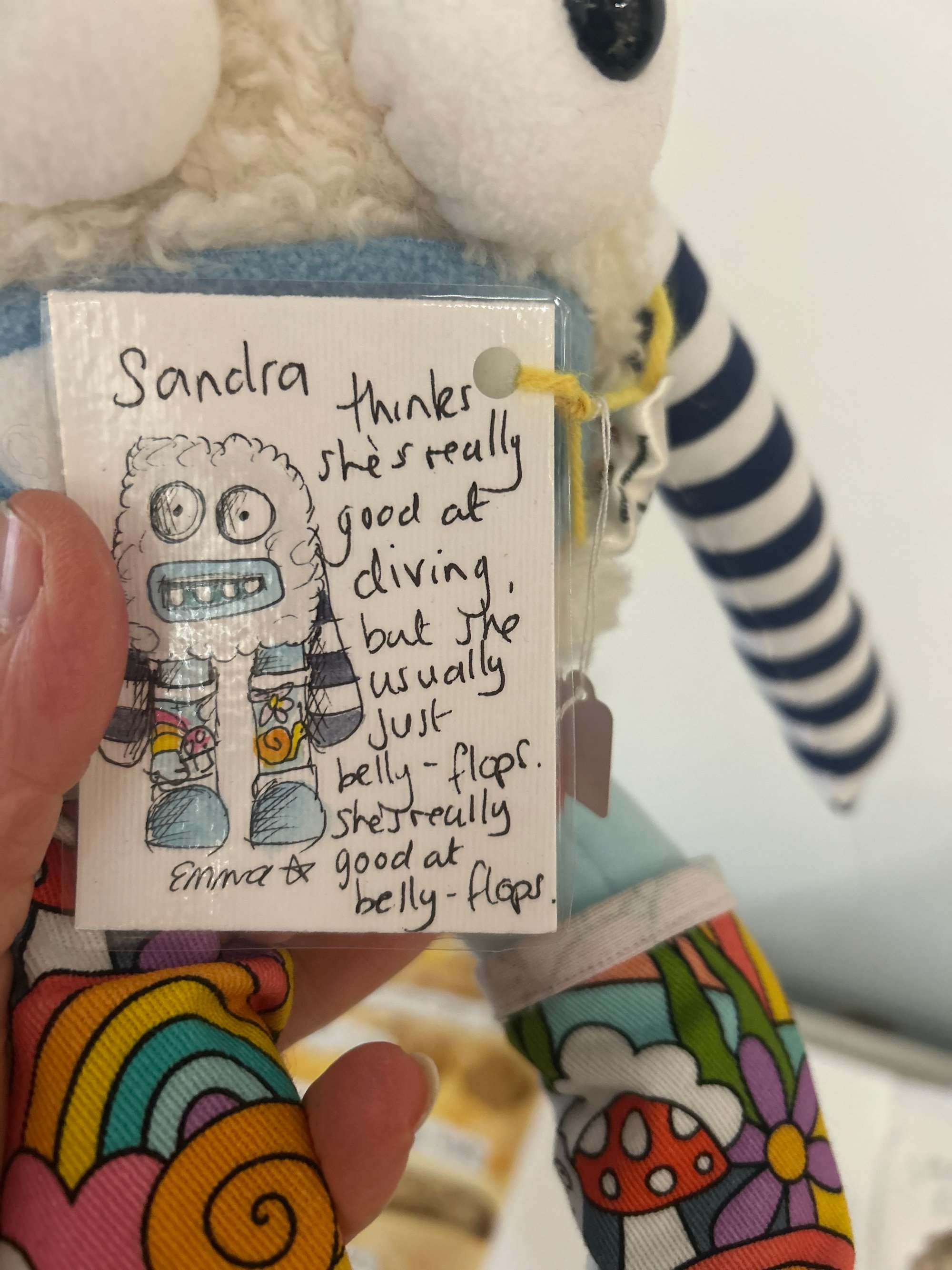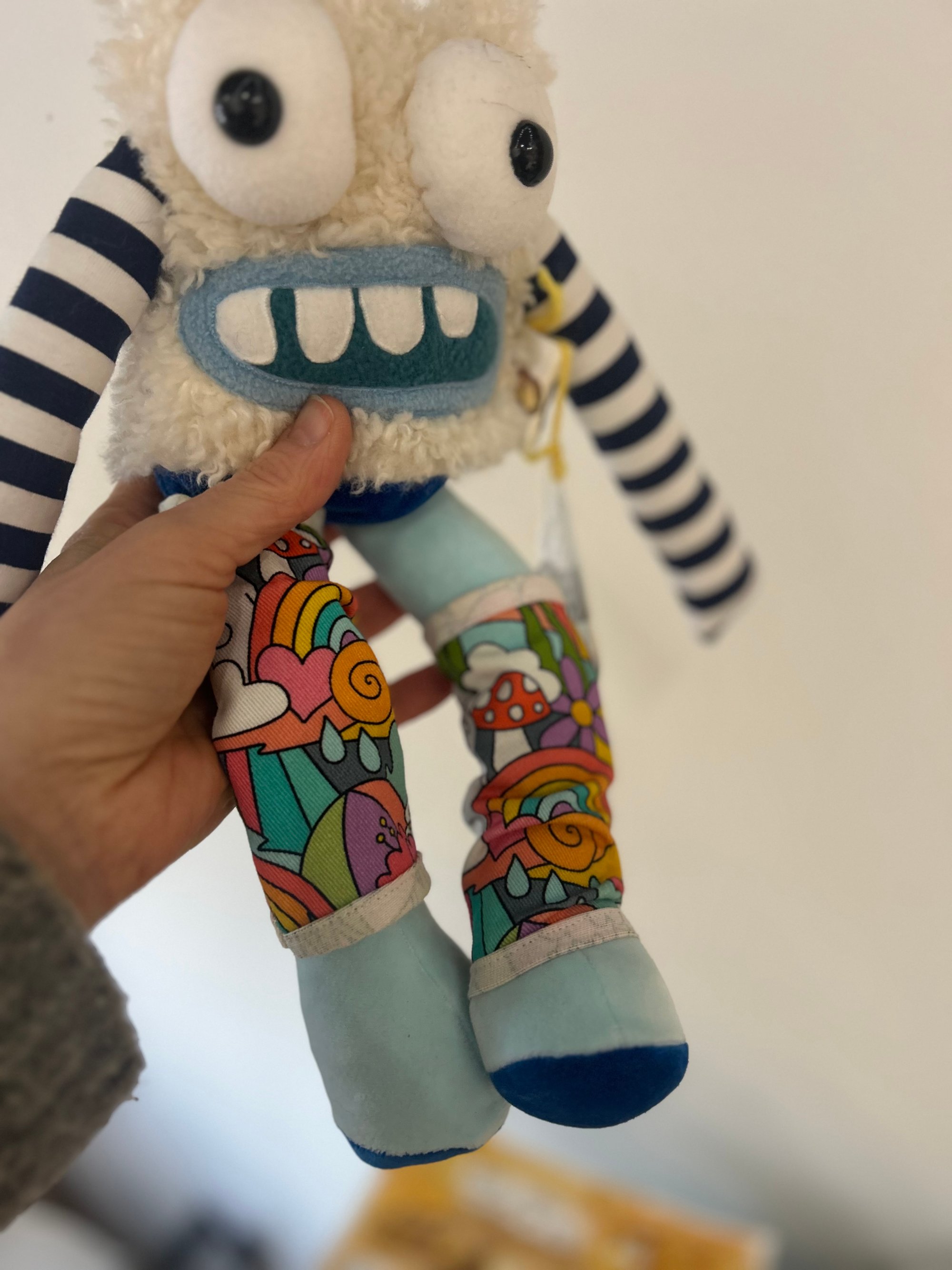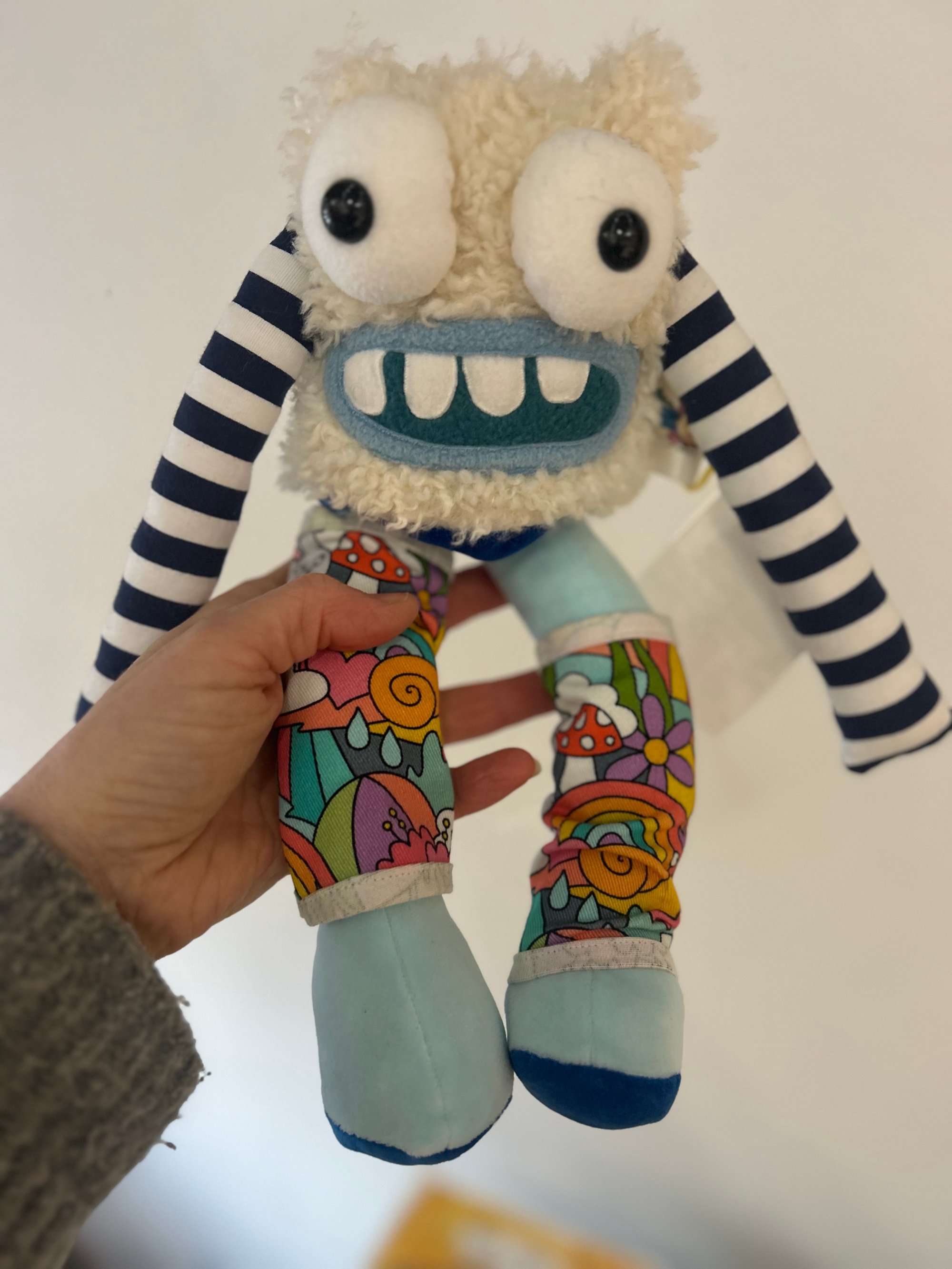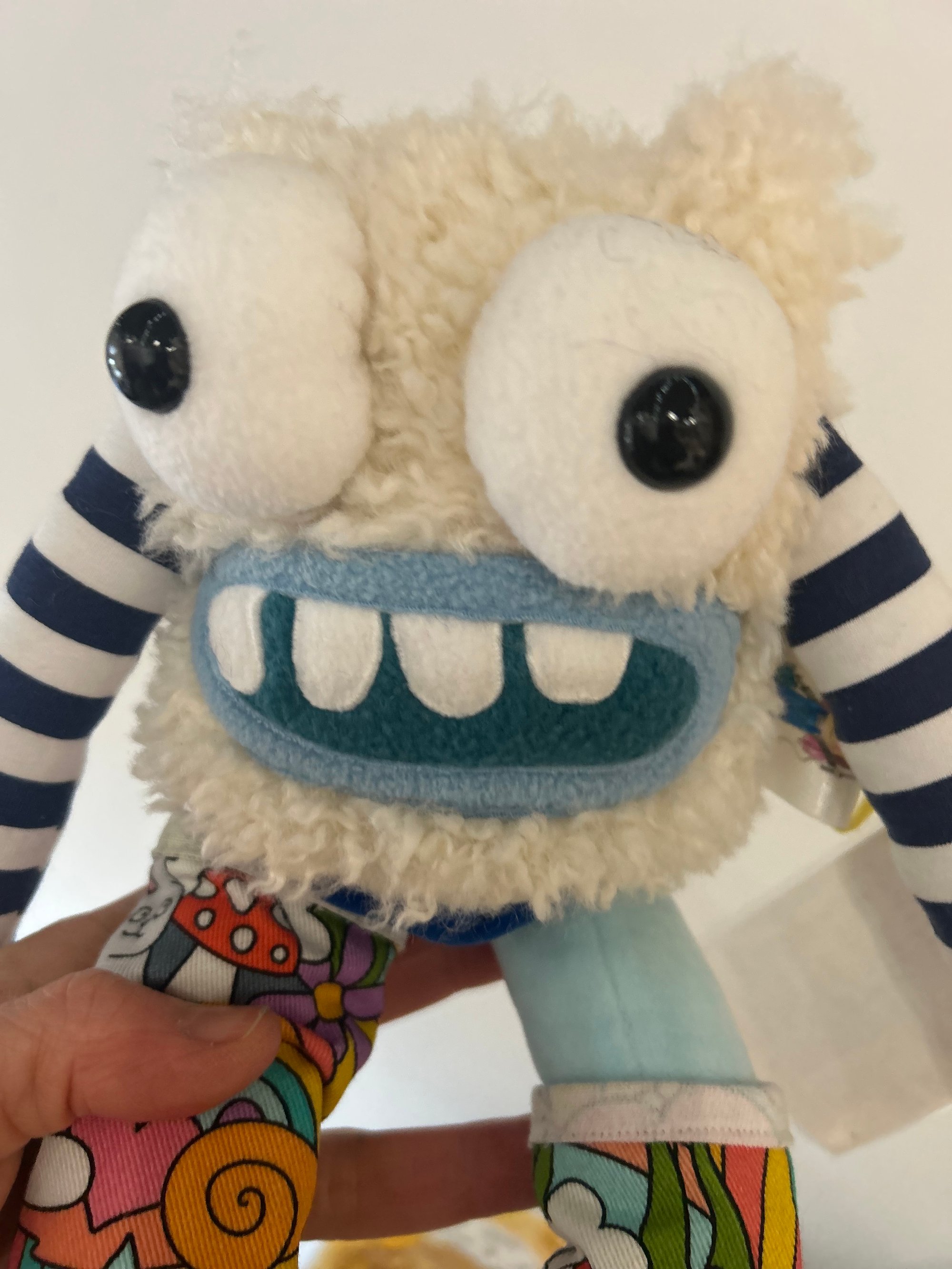 Sandra is a one of a kind monster plush, designed and made by me in my studio in Coventry.
